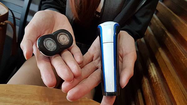 此時美女生氣了,跟她出來那麼邋遢太失禮了;立馬親自組裝 Philips U-tube S566 電動刮鬍刀。(簡單到不用教學)