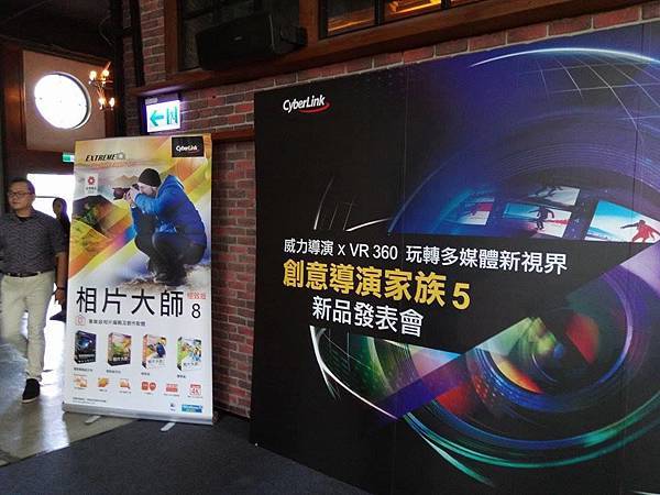 ▼ 進入會場就可看到超搶眼的立牌跟舞台佈置,當然也有超搶眼的 威力導演15跟相片大師8 的大海報。