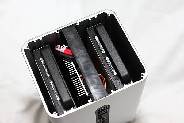 ▼ NE-201 機頂:頂蓋開有許多散熱孔,四顆螺絲轉開後就能看到硬碟架,再來把硬碟架取下安裝硬碟。