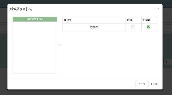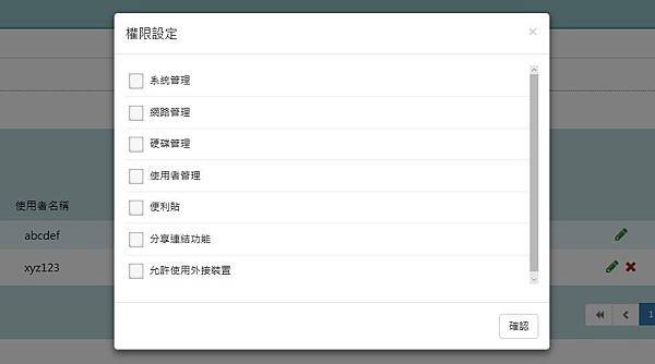 ▼ 新的使用者建立以後,可以對該使用者做權限設定。