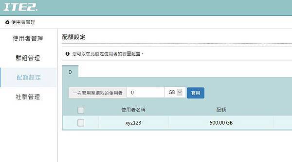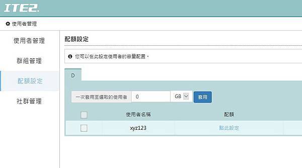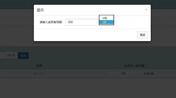 ▼ 如果硬碟不夠大或者是怕有人上傳太多檔案佔容量,可以針對使用者設定可以使用的容量。