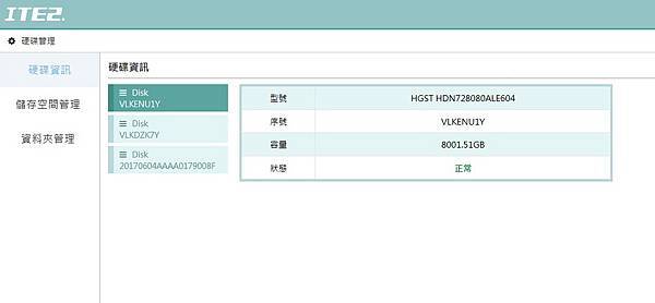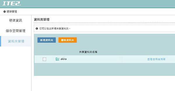 ▼ 硬碟管理 除了可以 檢視硬碟資訊,還可以管理 儲存空間,新增共享資料夾。