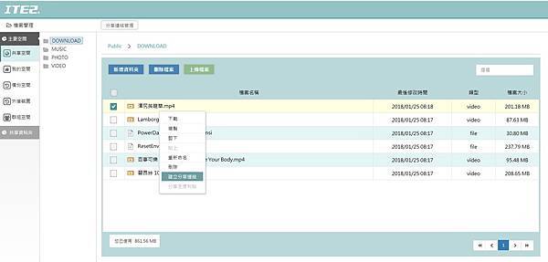 ▼ 介面很簡單的就是存取 NE-201 上面的各類共用空間。