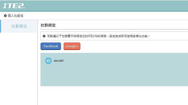 ▼ 結合社群:ITE2 NAS 跟其它家NAS比較起來,最大的特色就是好友也可以透過其自身的社群來提出申請,好友可以使用 Facebook或Google+, 來存取 NAS 上的共享資源。