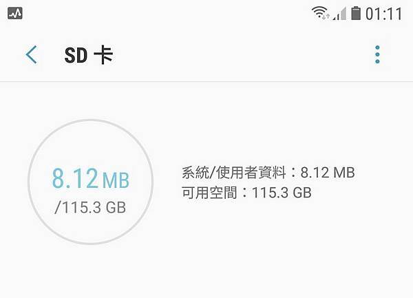 筆者的手機是 Samsung S7 edge,TOSHIBA EXCERIA M303記憶卡 可用空間約為 115 GB。