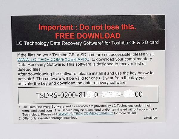 ▼ EXCERIA PRO N401 內附一張序號卡。