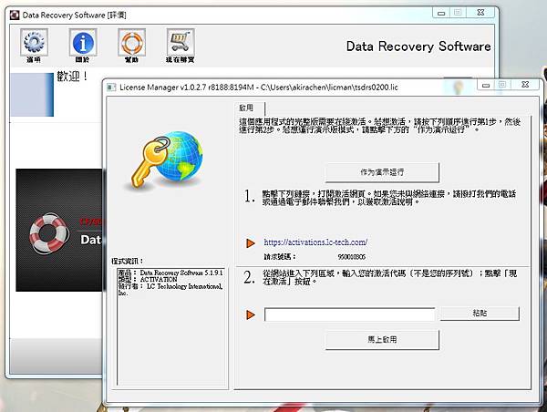 ※ 註:資料救援軟體 雖然僅有 一年的有效期限,大家可以學筆者先不要激活,哪一天真的運氣很差需要救援檔案時,再把它激活就好了。※