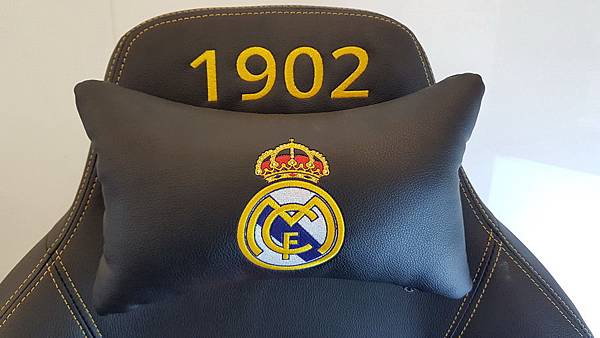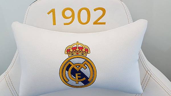 ▼ 記憶棉頭枕 上頭做工精緻的圖案則是「皇家馬德里隊徽」,椅背上方的「1902」則是創立的年代。