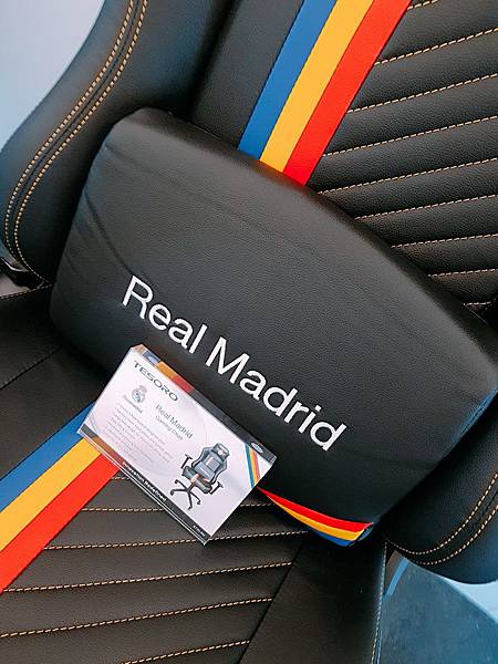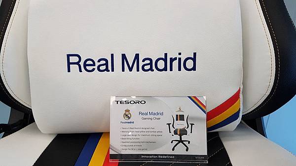 ▼ 鉄修羅的設計 真是講究,不僅椅背及座墊上都有 皇家馬德里隊徽 三種顏色,就連 記憶棉腰靠 上面也有著如此的設計。