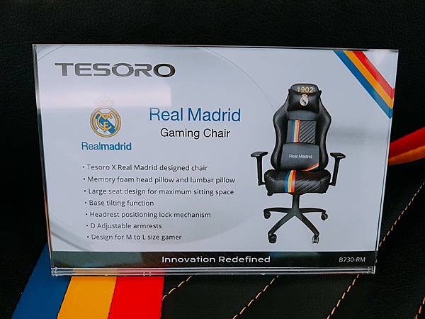 ▼ 由放置的牌子得知,此張 皇家馬德里電競椅,將來的型號應該是 B730-RM。