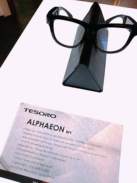 TESORO ALPHAEON w1 - 不論是電腦螢幕還是手機螢幕,眼睛受到藍光侵襲的時間只會更長,此款眼鏡就是為了保護靈魂之窗而設計,重量只有45公克、支援藍芽連接、骨傳導技術、使用時間長達8小時;這應該算是每個人都需要的產品,只是對於本來就有配戴眼鏡的人來說,就只好改戴隱形眼鏡。