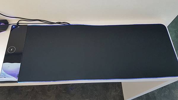 ▼ 筆者超愛這張滑鼠墊,除了它夠大張外,邊邊還會發光,重點還可以幫手機無線充電。(手機要支援)