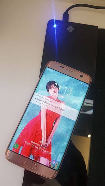 ▼ 筆者手機正在無線充電,在無線充電時上方的藍燈會閃爍。