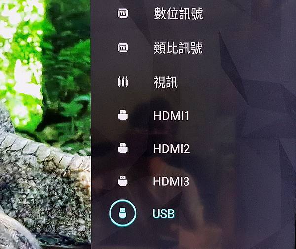 筆者在隨身碟裡面放了 照片及影片,50U6090 接上隨身碟之後,按下遙控器的 訊號源 選擇 USB。