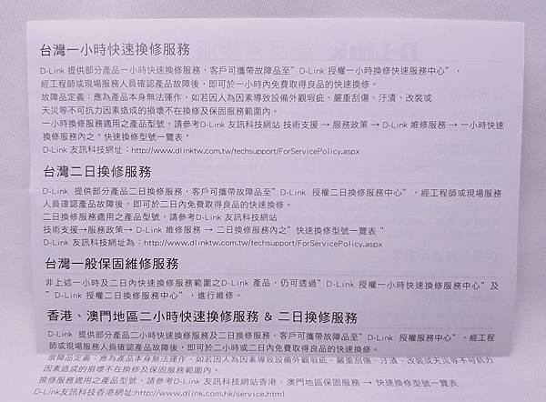 ▼ D-Link 在 台灣、香港、澳門,都有 快速換修服務及二日換修服務。