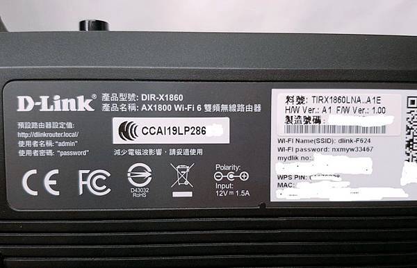 ▼ DIR-X1860 超省電,所以變壓器體積也蠻小的,輸入 AC 100~240 / 0.6A、輸出 12V / 1.5A。