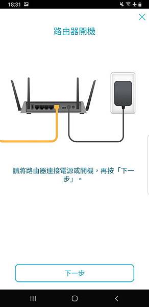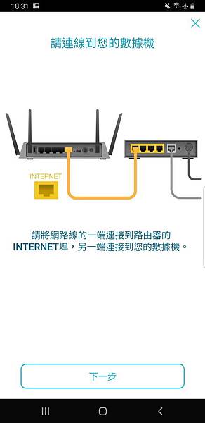 ▼ 剛剛說只要會接上變壓器及按下POWER就好,因為APP會很貼心的利用圖示,教導如何將路由器接上數據機。
