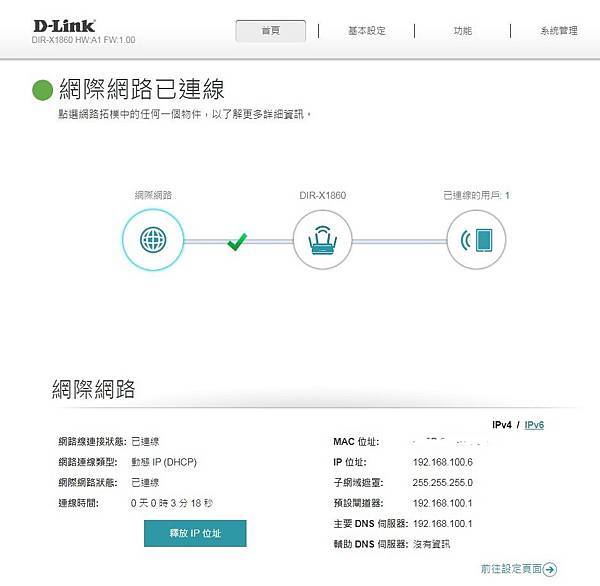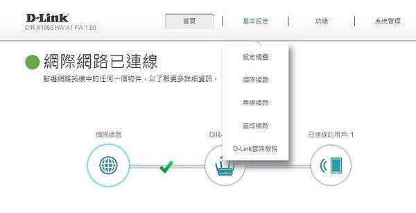 ▼ 連接自訂的無線名稱及密碼後,再開啟 D-Link Wi-Fi APP,就會看到這個畫面囉!