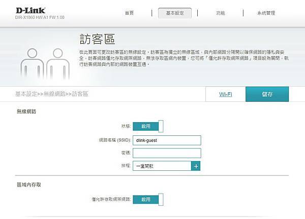 ▼ 無線網路 最特別的是有 訪客區,讓訪客的網路「僅允許存取網際網路」。
