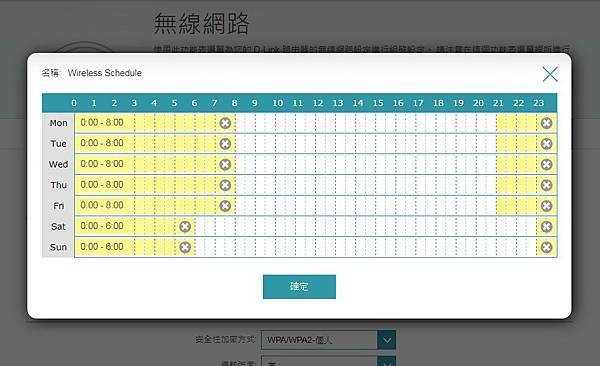 ▼ 無線網路 也可以設定排程,使用滑鼠拖拉就可以很輕鬆的完成設定。