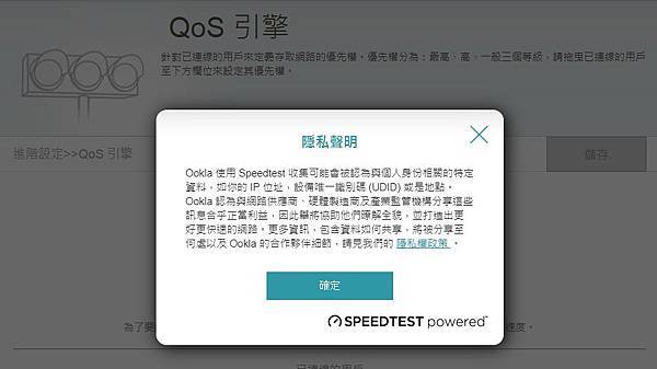 ▼ 進到 QoS引擎 建議還是先 查看速度(測速),同意隱私聲明後就會開始測速。