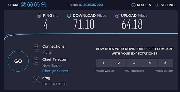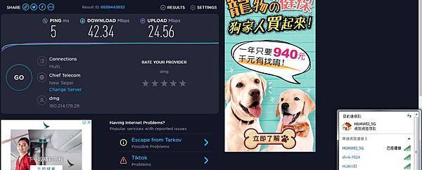 在家裡使用方面 - 只是更換了 D-Link DIR-X1860,在筆者房間的 電腦主機,無線網路 馬上就達到 申請的網路速度,可以不用再拉醜醜的網路線了。(還要整線多麻煩)