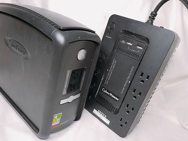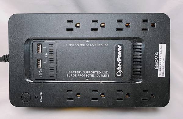 其實一般使用只需要買如下圖所示的 650VA 就夠了,CyberPower 最新款的機種,幾乎都會有 USB孔,方便使用者可以對 行動裝置 充電。
