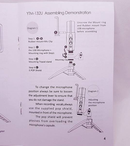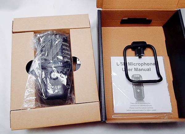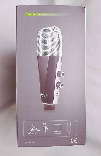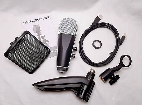 ▼ 主體與配件:YTM-132U麥克風、防噴器、腳架、USB連接線、說明書。