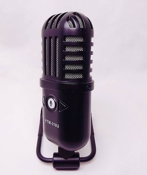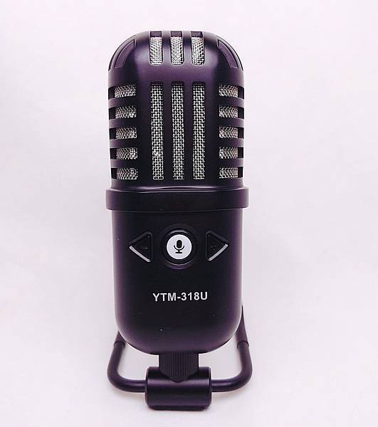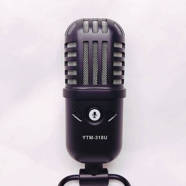 ▼ YTM-318U 正面:黑色系的鋅合金金屬材質,質感相當不錯,圓潤的造型還蠻可愛的;上半部為麥克風柵欄網罩,下半部則有功能操作鍵及型號。