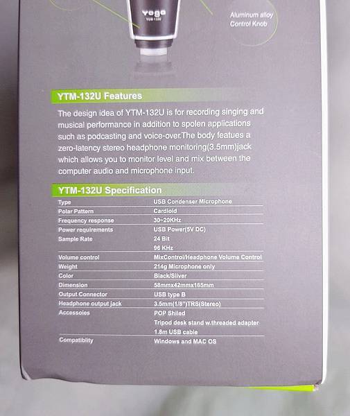 【Yo-tronics YTM-132U USB直播用麥克風 規格】