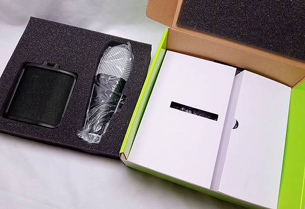 ▼ 包裝正面:同樣的風格…白色紙盒印上品牌LOGO,麥克風樣貌及型號。