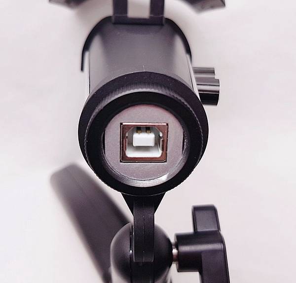 ▼ 麥克風 底部:讓筆者很意外的連接孔是跟印表機一樣的,看來要小心線不要掉了。