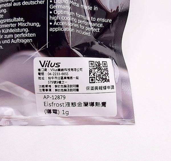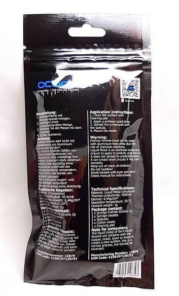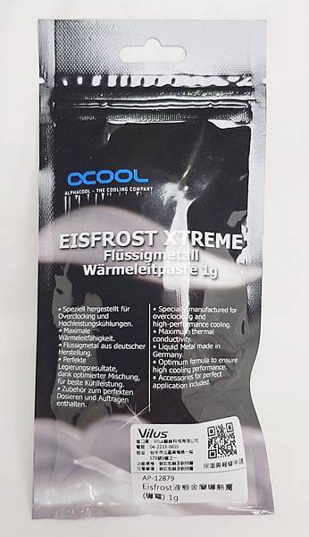 ▼ ALPHACOOL液態金屬 外包裝,使用密封塑料袋包裝,黑底白字的冷酷設計,蠻符合散熱主題。