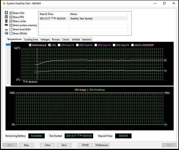 ▼ 同樣使用 AIDA64 燒機25分鐘,可以看到 CPU溫度 大約是 29℃左右,比起原本的散熱膏整整降低了 3℃。