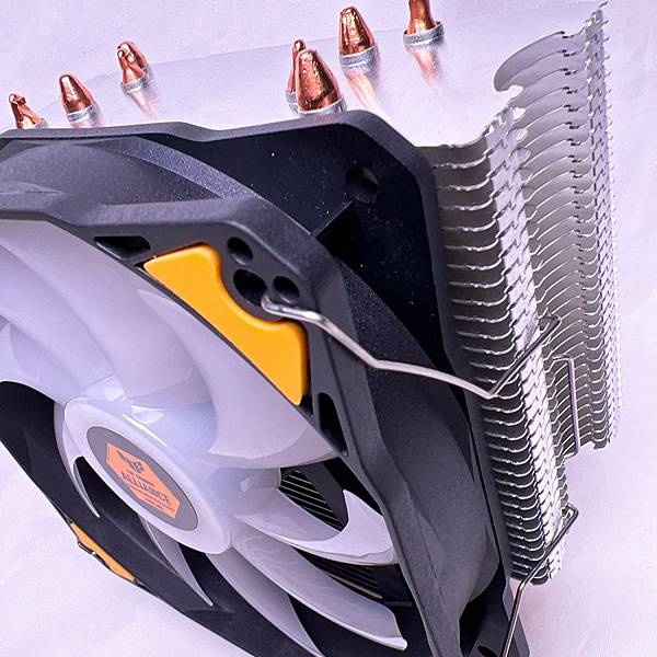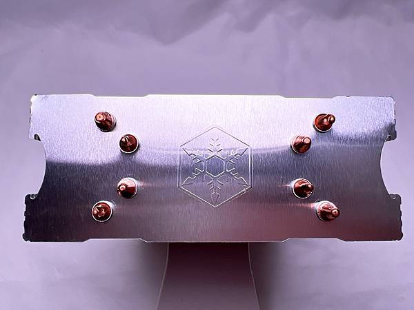 ▼ 全鋁塔散頂部可以看到 銀欣科技LOGO,還有四根全銅熱導管的排列位置。