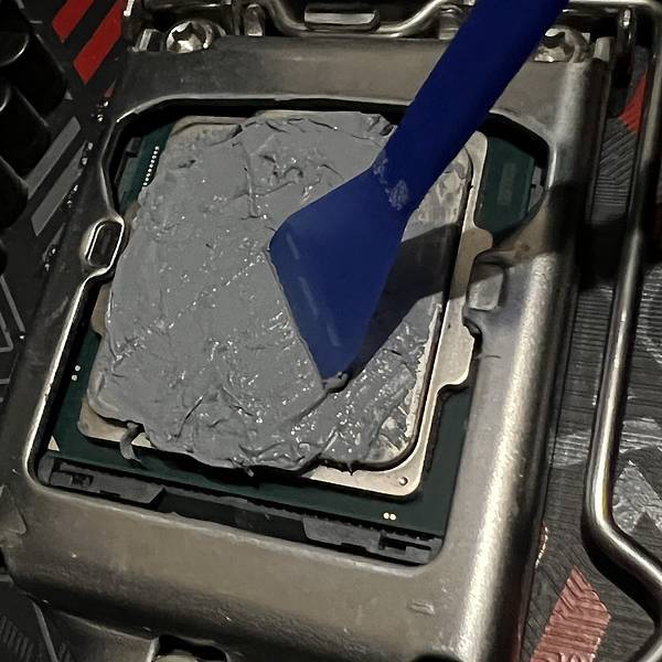 ▼ CPU擠上散熱膏,特別拿刮刀給它好好抹平。