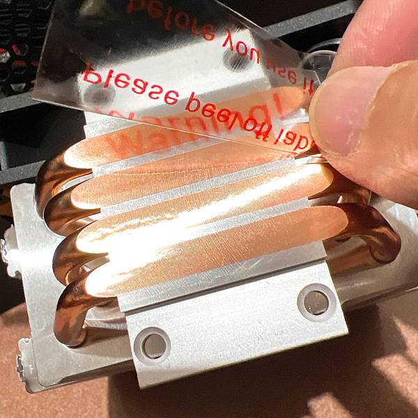 ▼ 底部可以看到採用熱導管直觸技術,有貼著一層膠膜,安裝時記得先移除。