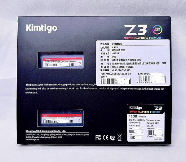 ▼ 取出內容物可以看到被保護得很好的 Kimtigo Z3 RGB DDR4-3600MHz