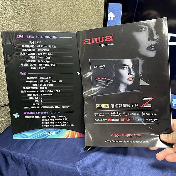 ▼ 這次現場 AIWA ZS-AG7H65HUD,可說是款高規格的 65吋 4K 智慧顯示器。