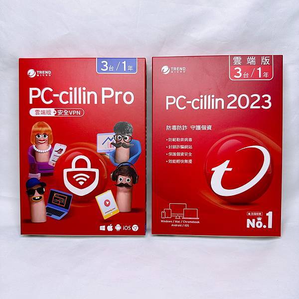 ▼ PC-cillin Pro 跟 PC-cillin 2023 雲端版 盒裝正面,PC-cillin Pro 就是 PC-cillin 2023 雲端版 + 安全 VPN 功能。
