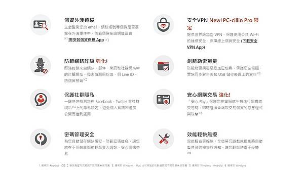 ● 最新推出 PC-cillin Pro,完美整合雲端版和安全 VPN,同時提供裝置防護和 WiFi 連線安全防護。