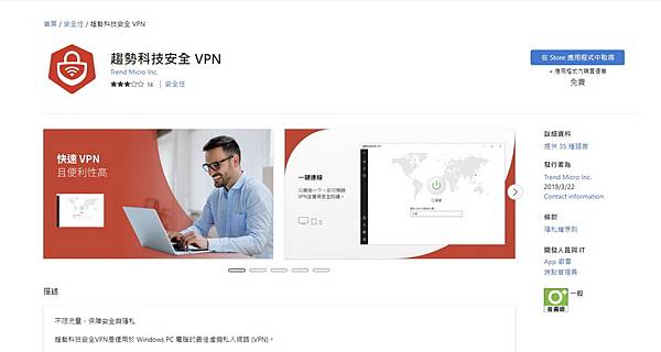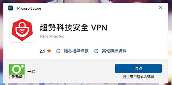 ▼ 趨勢科技安全 VPN 可以直接在 Microsoft Store 搜尋下載