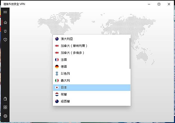 ▼ 當然也可以選擇把VPN連線到 別的國家 伺服器