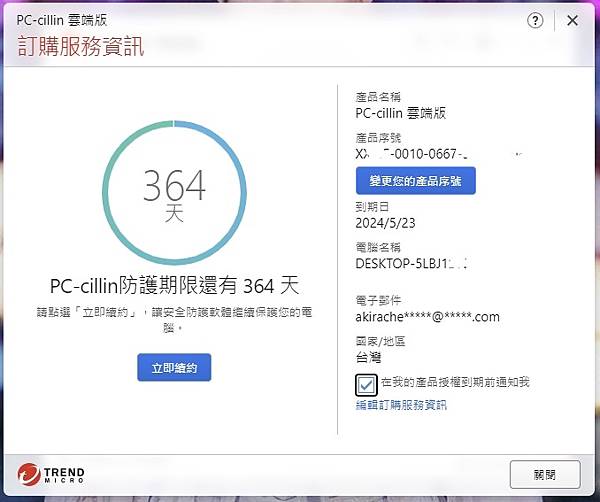 ▼ 輸入產品序號後,可以馬上看到剩下的 防護期限。