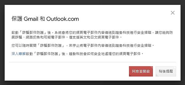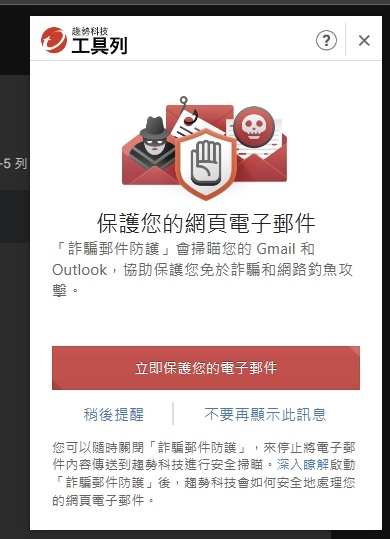 ▼ 趨勢科技 工具列 會很貼心的提醒開啟 保護網頁電子郵件。