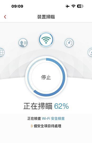 啟動後,趨勢科技安全VPN會立即掃瞄您的網路是否存在弱點和安全風險。