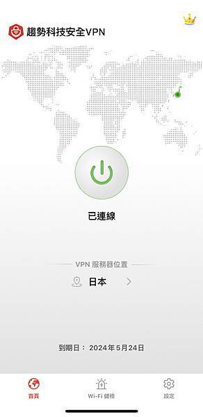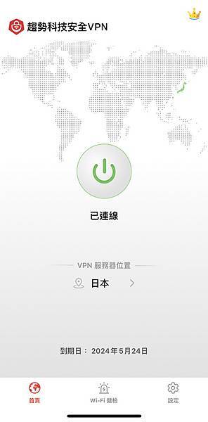 ▼ 打開 趨勢科技安全 VPN,把它切換至 日本區 連線。