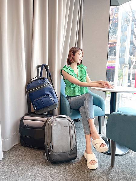 Targus Citygear 17吋 耐衝擊 DOME 商務拉桿箱 直接給它搭配另兩款 Targus 後背包,利用 後背包 都有的行李帶設計,套上拉桿箱的拉桿,怎麼搭配都合適,移動起來超輕鬆。