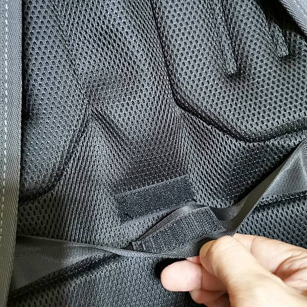 ▼ 厚實的可調節式減壓背帶,同樣有散熱網狀設計。