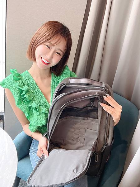 ▼ 美眉檢視背包的大容量